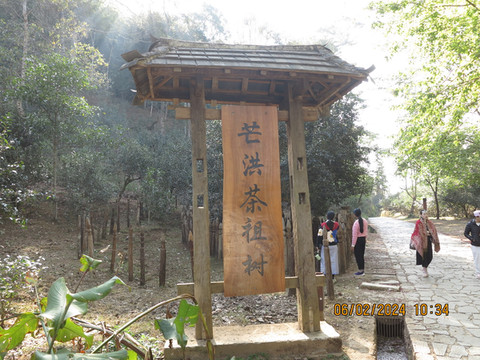 看完日出回到民宿吃饭收拾行李,准备离开翁基,这里店开门都晚,奶茶店都要十点以后才营业,还不能打包,只能遗憾放弃。沿途找了几个点,去看看景迈山的风景。先去最远的芒洪茶祖树,基本到了核心景区的外围,茶树很粗壮,有村民在直播。