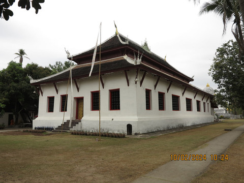 琅布拉邦最古老的寺庙是维苏那拉特寺(WAT WISUNALAT),它始建于1513年,现存的主体建筑大多是在1896年后重建的。1887年,一伙称为黑旗军的云南土匪焚烧了寺庙,1898年重建。有着高大天花板的主殿里摆放了很多木制祈雨佛像,和15到16世纪琅勃拉邦的戒坛。由于在重建过程中融入了不少印度和高棉元素,这使得其戒坛看上去有别于传统的老挝风格。寺内很多佛像,基本属于祈雨的,看介绍,按照手指和站姿有高棉风格和老挝风格。