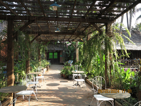 离开寺院随意走走,马路上到处是老外,有的在和突突车司机谈生意,有得自己开着摩托到处玩。路边随意找了个咖啡店,买了面包饮料,路过一个艺术博物馆参观了解一下少数民族的纺织品,看完回酒店吃饭。