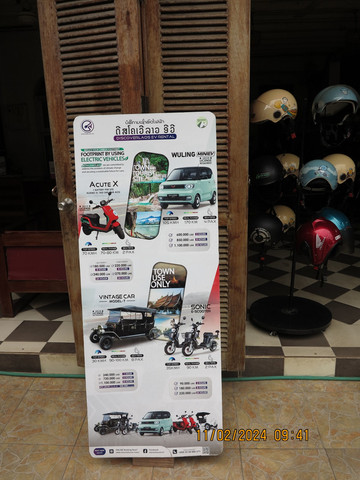 第九天:一早先去不远的租车行租车。老挝最正确的打开方式就是摩托车。我们看到小牛电动车,50块租一天,这里的电瓶车可以开到70公里。摩托车这里都不需要驾照,但这里租车都是没有保险的,和老婆一人一辆车,开着电瓶车和老婆转了一圈,