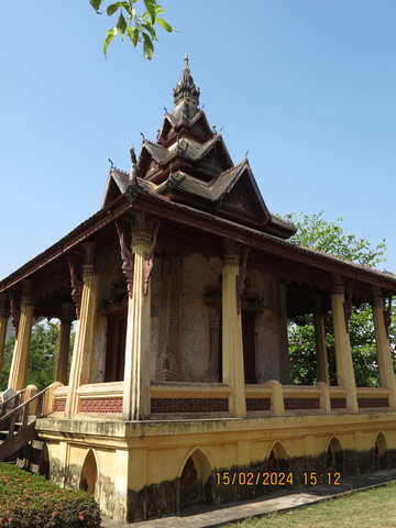 离开寺院一路步行去玉佛寺,路边庙宇不少,玉佛寺周围时使馆区域。这里现在是国家文物博物馆,老挝玉佛寺是澜沧王国的赛塔提腊国王于1565年下诏而建的,主要用来供奉从龙坡邦带来的碧玉佛像。面积不大,主题建筑里面都是一些佛像文物,隔着墙就是老挝国家主席府,这里人不多,随意走走。