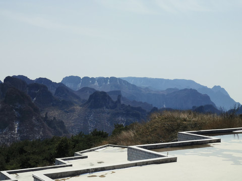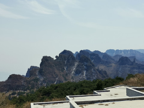 疫情期间,缆车没有开放,乘景区的摆渡车一直到山顶,然后可以在山顶的景点游览。路上导游说王莽岭“奇、险、秀、怪”,我认为秀怎么能谈得上呢,北方的植被很差,说“秀”似乎有些夸大其词了。