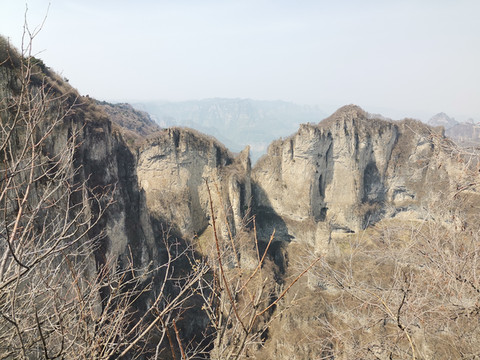 看到山西与河南交界处的悬崖峭壁,就能知道什么是天险了,直立的山崖,也只能是,古代的飞侠,纵身一跃飞上来,事实上是上不来的了,眩晕的人在这里看一眼都觉得两股颤颤,这是太行山的精华。