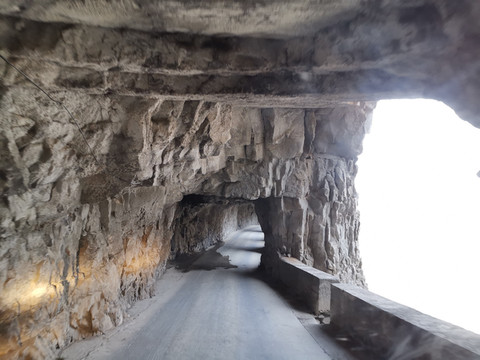 当昆山隧道的铁栅门打开的时候,我还很好奇,隧道怎么还锁门,司机说这就是挂壁公路了。昆山隧道约长3000米,由于地质结构的原因,不能拓展太宽,仅仅过下一辆小汽车,也只能单向行驶,落差很大,拐弯很多,险是很快就能体验到的,不来这里不亲眼看到根本无法体会到“挂壁”的独特,太不容易了,也能想象到太行山上郭亮村和锡崖沟当年的村民为修路吃了多少苦,也能体会到中国老百姓有多么朴实和勇敢。这条挂壁公路与其他挂壁公路不同的是,这里是为了山沟里居住的昆山村民上山来,而其他的挂壁公路是为了山上的村民下山来。总是,都是了不起的工程。