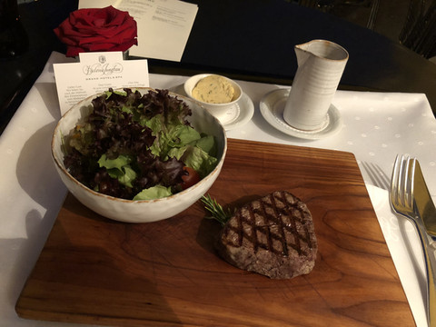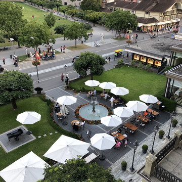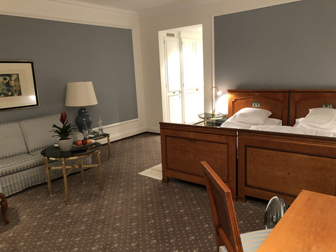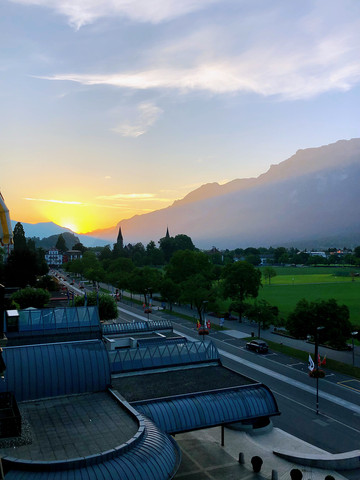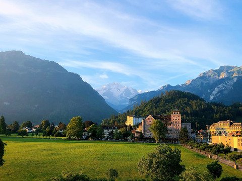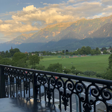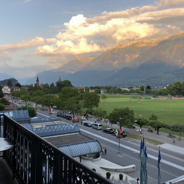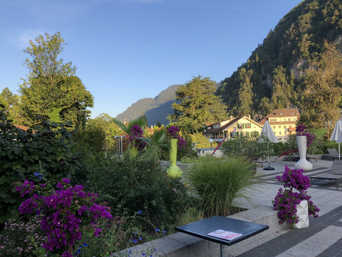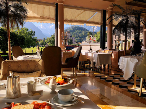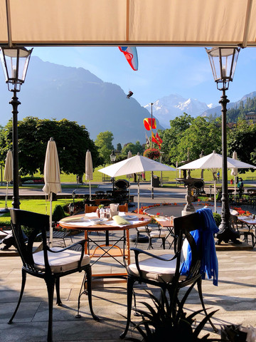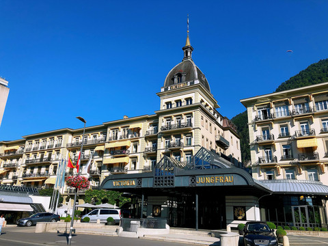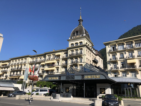 我们入住的酒店是因特拉肯维多利亚少女峰水疗大酒店(Victoria Jungfrau Grand Hotel and Spa Interlaken),价钱贵又难抢,但是酒店地理位置巨佳,房间的阳台正对着少女峰