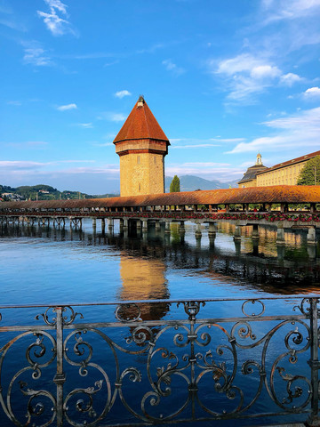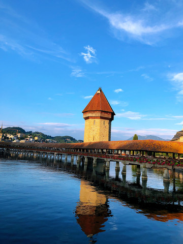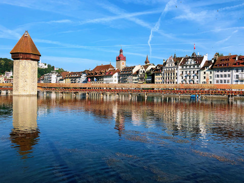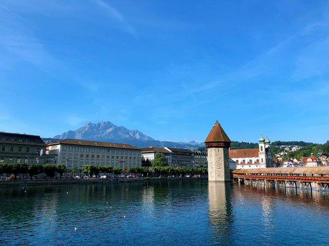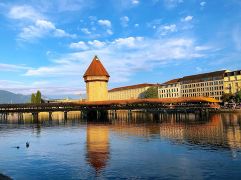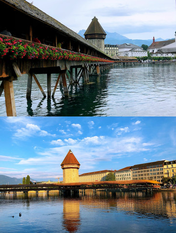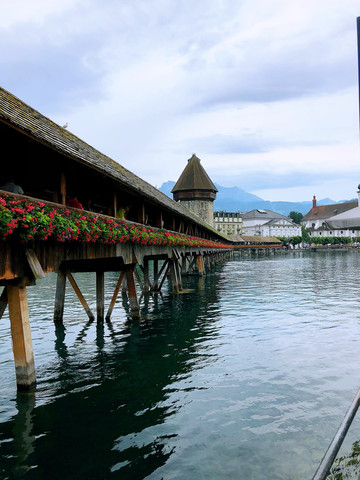 卡佩尔廊桥和八角型水塔,在明信片上常常露脸,早已成为瑞士的标志性建筑,其实他是一个军事瞭望台,廊桥也不过200米,那座水塔也是水上防御工事的一部分。