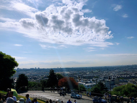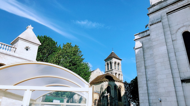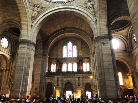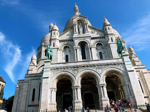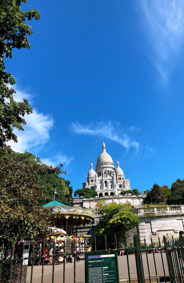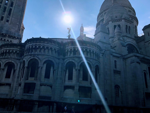 继续走就是圣心堂了,这里是巴黎的至高点,129米。圣心堂远远看去庄严辉煌,那白色圆顶造型独特,既像罗马式,又像拜占庭式