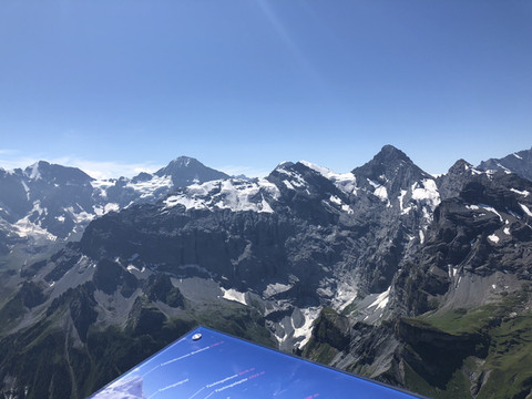 雪朗峰~海拔2970米,就在少女峰附近,一直在想这个问题要不要去,正好这一年swiss pass有活动免票,在因特拉肯的两天天气又好的要命,还是决定去坐缆车体验一下。