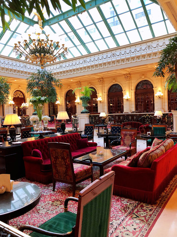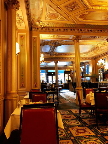 酒店最豪华的地方-和平咖啡馆,1862年开始营业,延续了法国第二帝国时期的优雅,用金色立柱和大幅壁画装饰富丽庄严。雨果、莫泊桑、福楼拜等名人都曾是这里的常客。