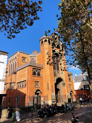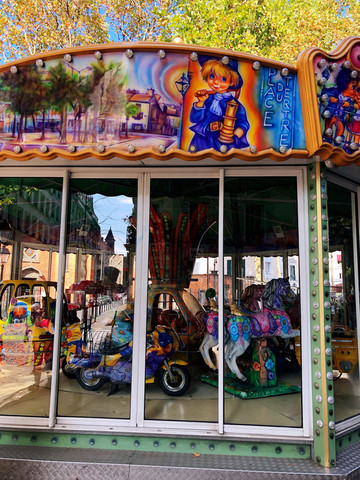 地铁出来你能看到可爱的旋转木马和红色砖墙的圣蒙马特教堂