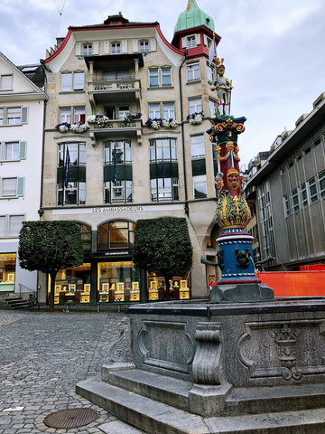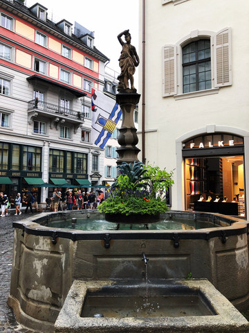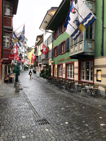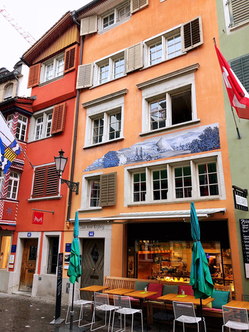 来苏黎世只是为了转机,并没有什么特别的景点,印象中最喜欢的就是奥古斯汀巷,这是当地极富历史性的街道,石板路两旁分布着诸多精美的历史建筑,色彩缤纷的小房子均挂着瑞士国旗,充满浪漫怀旧风情。