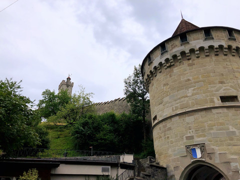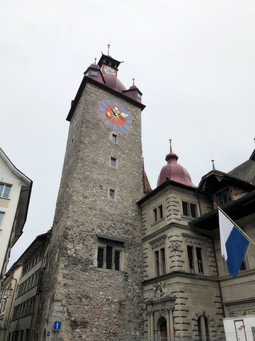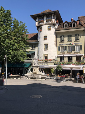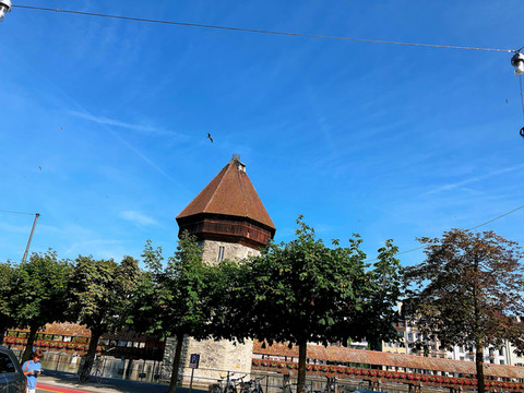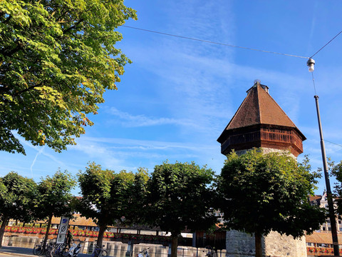 瑞士的酒店通常会在入住时给你一张公交车乘车券,但是有了Swiss Pass也不需要了,可以乘坐所有的交通工具。出门首先就要经过水塔,怎么看都觉得很好看