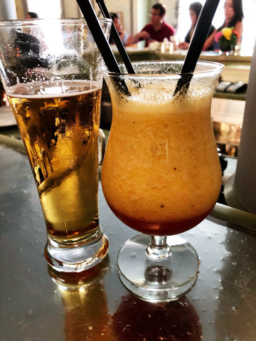 酒店的1楼有露天餐厅,就在湖边,静静的遮阳伞下坐着沙发,喝着美酒,欣赏平静的湖水和落日,这份意境超越了味蕾