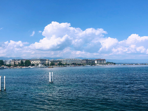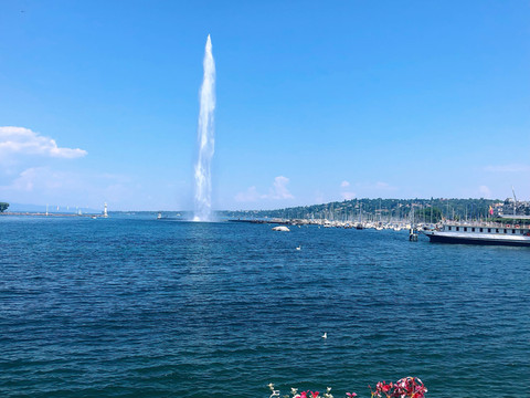 日内瓦湖畔算是比较凉爽了,那个大喷泉还能有一丝凉意,天太蓝了,随手怕怕都是一张美图