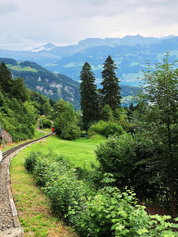 逛完老城,就要上瑞吉上。瑞士的交通非常便利,火车、船、缆车全部能接上,一个SBB Mobile 的APP全能搜到而且准点。我们在琉森火车站附近坐船到Vitznau,然后坐火车上山,小火车很漂亮