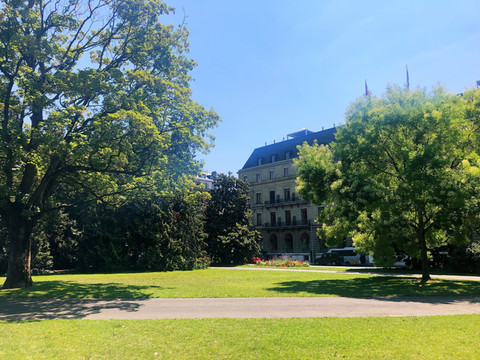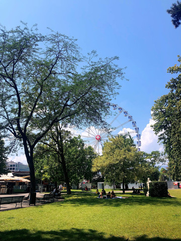 天气是真的热,沿着日内瓦湖畔走过英国花园,在阴凉的草地上解决了午餐