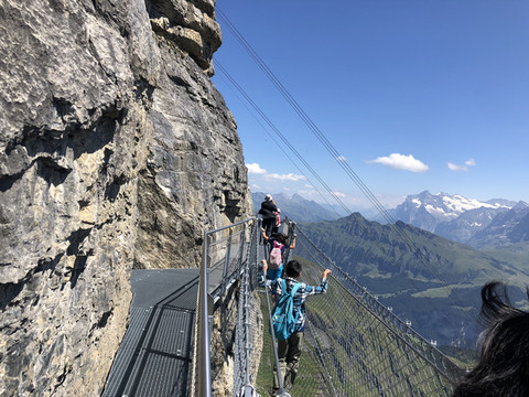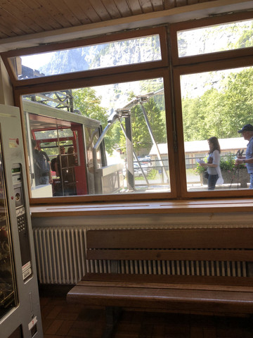 同样是在因特拉肯东站,坐火车到劳特不论嫩,换公交车到施特歇贝尔格缆车站,开始雪朗峰缆车旅途,当中经停三站,换三次缆车,分别是Gimmelwald、Murren、Birg,听上去比较复杂,其实全都接轨在一起,完全不担心,要注意的是,缆车换乘时上和下就在一起,不要走错了,当然买票时也不会错,一次票只能上一次,但就因为免费我就乘错了,明明是往下结果又往上了,差点错过了去伯尔尼的火车~