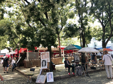 爬到顶端,两边马路都是咖啡馆和街头画家的聚集地