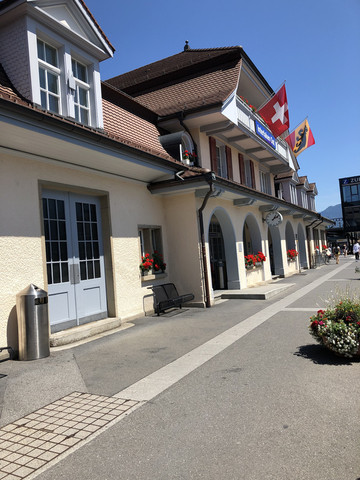 因特拉肯有两个车站,大部分车都停在东站,就是下图的这个,另一个西站相距1公里多,去少女峰和雪朗峰的车都是从东站出发,这里也有储物柜,很方便。