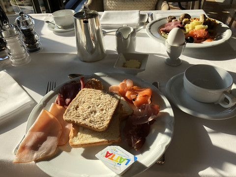 酒店最好的是早餐,品种丰富当然不用说,餐厅的位置一流,最好坐在露天位,太阳不是很烈,吹着小风,面前一个接一个五颜六色的降落伞飘过,那种感觉太棒了