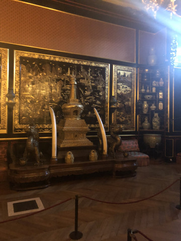 在枫丹白露宫中,中国馆单独呈现,陈列着中国明清时期的古画、金玉首饰、牙雕、玉雕、景泰蓝佛塔等上千件艺术珍品,这些藏品大多来自圆明园。