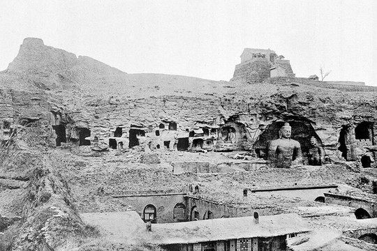 该图摄于上个世纪初,洞窟与民居混在一起。(图片选自网络)
