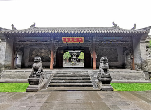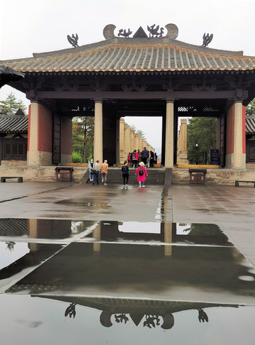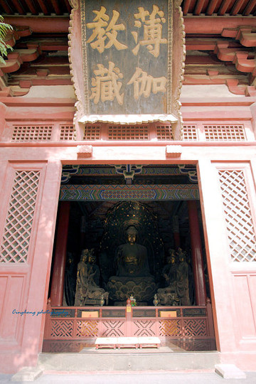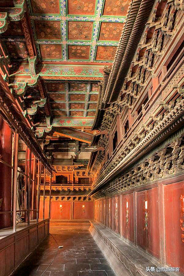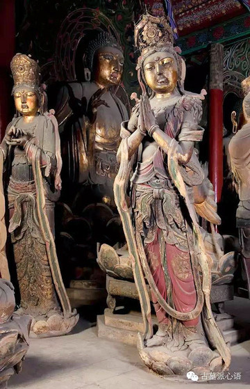 华严寺。建于辽重熙七年(1038年)依佛教经典《华严经》取“慈悲之华,必结庄严之果的大乘教义为名。在辽、金两朝地位颇高,俨然皇家寺庙。现分上华严和下华严两部分。特别是下华严的薄伽教藏殿乃辽时建筑,內有两层楼阁式藏经柜,共38间之多。存有明、清藏经1700余函,18000册,最为贵重的是明永乐和万历年间的刻印佛经1700册。在众菩萨塑像中 以一尊面带微笑的“合掌露齿”胁侍菩萨像最为生动,堪称“神品”。塑像高约两米,赤足站立在莲花台上,体态丰盈、上身薄袒、衣饰贴体、肘悬飘带、发束高冠、身姿略侧、颈项微斜、双目半睁、朱唇小开、两手合十、举至胸前、露齿微笑,梁思成赞叹其为“东方维纳斯”。俱说,这尊塑像是一位塑像师傅的女儿,她来寺庙为塑像的父亲和其他师傅们端茶倒水,其婀娜的身姿就被塑成像。该尊塑像即有菩萨的庄重典雅,更多了些少女的妩媚风情,是难得的精品。敬佛,没敢在殿里拍照,在殿外拍了张侧影,又上网找到了正面像,供大家欣赏。