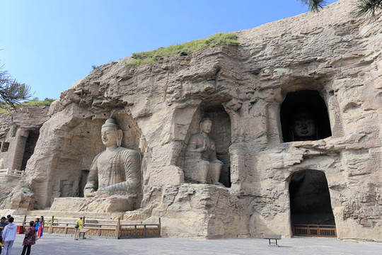 其孙文成帝拓跋濬却虔诚礼佛,为赎爷罪,延请高僧昙曜主持开凿佛像。现今被称为昙曜五窟的16至20窟是整个石窟群的第一批雕刻。昙曜所主持雕凿的五窟中的大佛,身材魁梧,据说是以北魏开国五位帝君为原型雕琢。由于缺乏图像资料,这五尊佛像谁代表哪位帝君则成为谜团,即使最先进的DNA检测怕也无能为力。