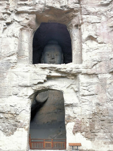 最大的第20窟,其外殿堂,包括岩顶已坍塌,成为了露天造像。大佛高20米,脸型圆润丰满、双耳垂肩、面目慈祥、鼻直额宽、眼睛有神、唇角微翘、袈裟纹理精致、法相庄严。