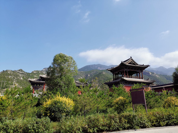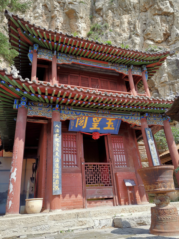 10:32到达会仙府。这里的贞元殿也就是朝宗殿是恒山的主殿有康熙题写的“化垂悠久”牌匾,山体上有石刻大字,每个字有一丈多高。会仙府的玉皇阁、御碑亭等都是恒山的重要景点。