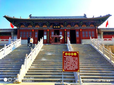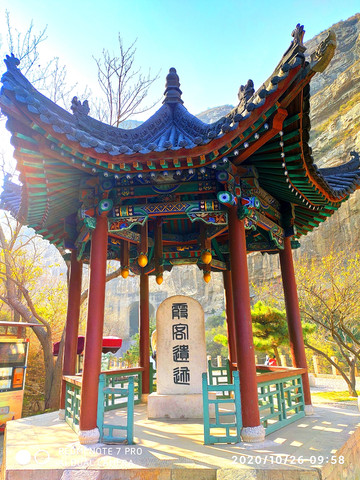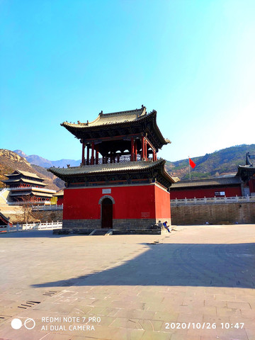 人天北柱。恒山主峰天峰岭,海拔2016.1米,被称为“人天北柱”,“绝塞名山”,“天下第二山”。看到人天北柱就开始进入庙群区,过了人天北柱牌楼是马神殿。马神殿又叫御马间,是为北岳大帝的坐骑而建。帝位的尊贵其马如同其主,故称“神驹”,于是建庙以神供奉。