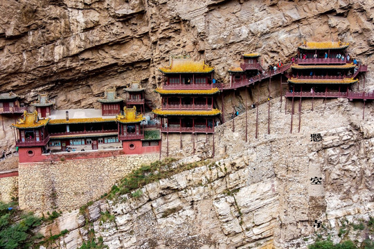 作为恒山十八景中“第一胜景”,悬空寺建成于公元491年,是中国仅存的佛、道、儒三教合一的独特寺庙。其置身于幽深僻静的山谷之中,镶嵌在崖壁之上,层楼高悬,曲榭斜倚,栈道飞架,廊腰缦回,仅能容纳一人小心翼翼通过。