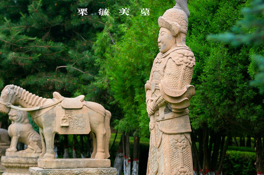 如今,走进栗毓美墓,不仅有汉白玉牌坊,在墓道两侧,还对称地排列着五组十尊石像生,有羊、虎、马、武将、文臣,高大威严、气势磅礴。