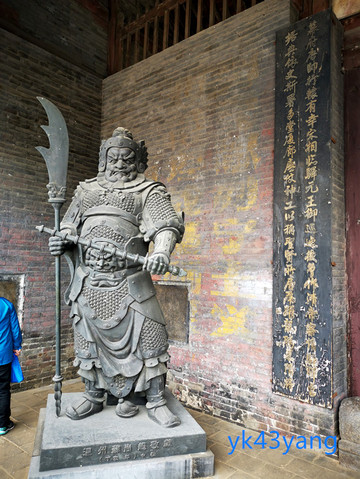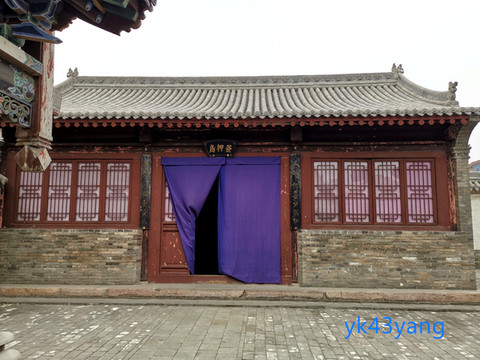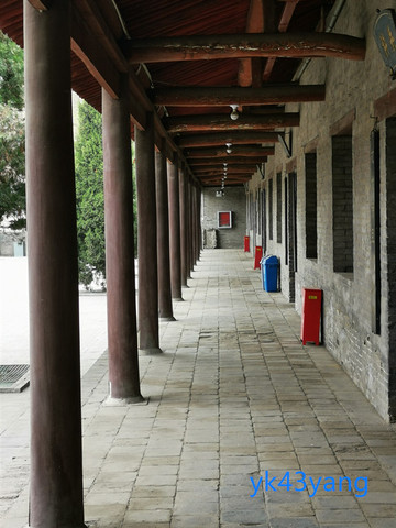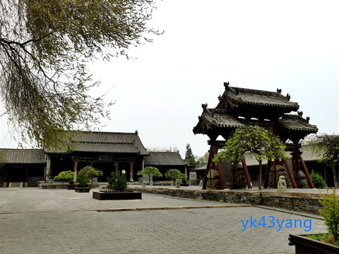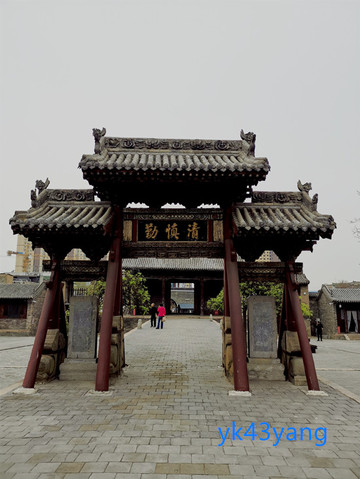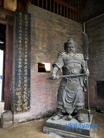 仪门廊下,放置一面大鼓,是让百姓击鼓鸣冤的。大门两边还雕塑一对门神,据说是秦琼和尉迟恭。两人手中各执鞭锏,确实是他们惯用的短兵器。但又各捧一口大刀,却不符合小说中的情节。我突然想到,尉迟恭站在这里充当门神是一件很奇怪的事情,因为衙署的过去曾是他自己的帅府行辕。