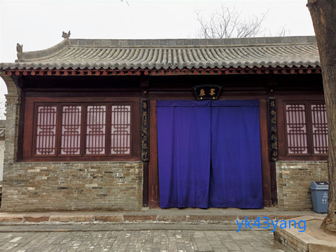 庭院的正面是衙署的二堂。二堂是官员审理不宜公开案件的地方,也是处理日常事务的正式场合。现在所见为民国年建筑。二堂面阔五间,硬山顶。堂前有一间卷棚顶抱厦。抱厦檐下有横匾,题曰“鉴心堂”。两边的前柱挂有楹联:“法行无亲,令行无故;赏疑唯重,罚疑唯轻”。这样的处事方式,很令人赞赏!后柱也有楹联:“为政应公廉,勿尔一私铸成冤案;做官循律度,看吾百姓都是良民”。后一句就是现代法律中的“有罪推定”原则。可见古人也有先进的法制观念。