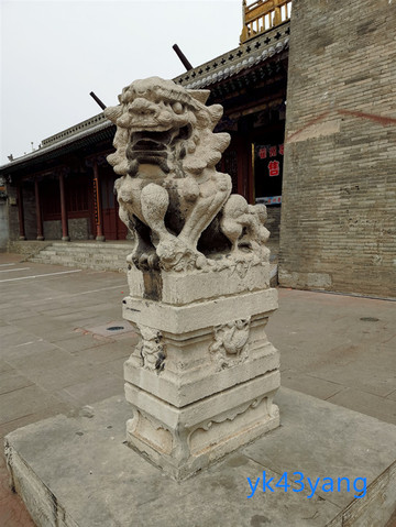 大堂立于月台之上,月台前端两侧有用玻璃罩保护的唐代石虎和元代石狮各一对。看来什分珍贵。