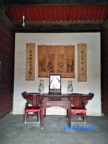 西侧为客厅,应该是接待一般客人的地方。大门两边也有楹联:“议论应从社稷出;筹谋当为国家计”。