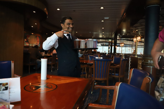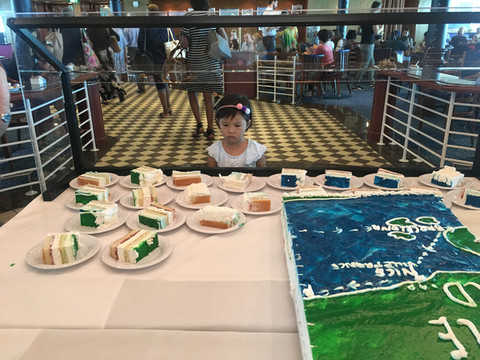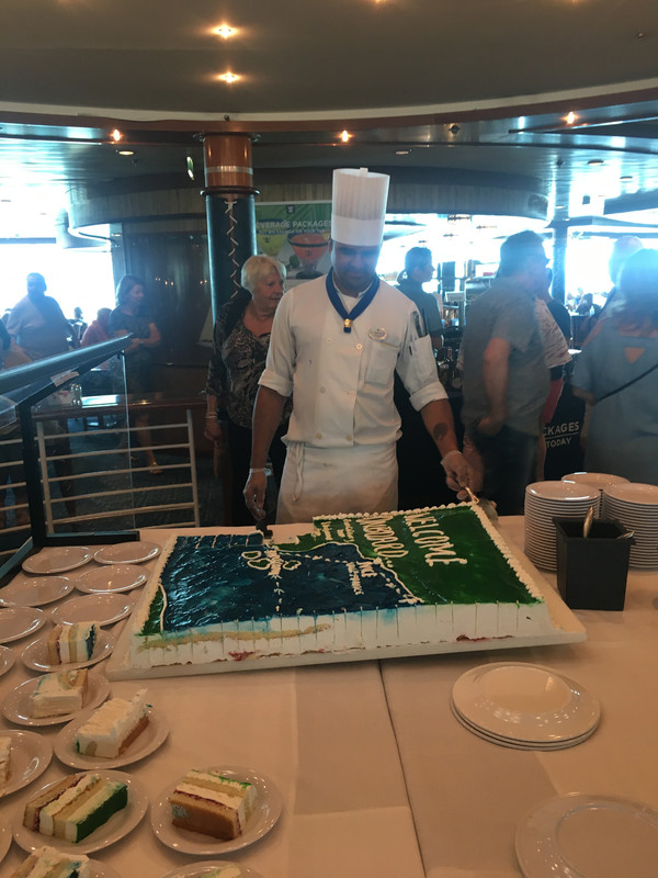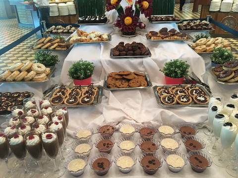 最后一天早餐,邮轮为我们游客准备了丰富的甜点,餐厅门口摆着各式特色甜品非常的诱人。