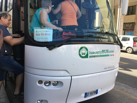 我们在里窝那市中心下车,回邮轮还在这里上车。下车后,就能看到一家旅行社,买了去比萨景区往返大巴车票,每人15欧,小孩免费。比在邮轮购买一日游车票划算,邮轮上提供的往返车票每人65美金。