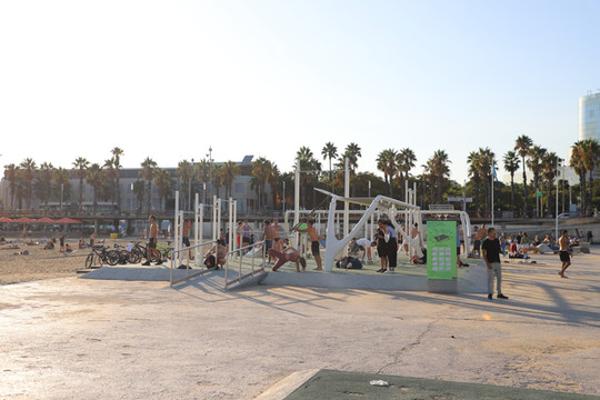 从酒店沿海边去往巴塞罗那塔海滩的路上,游玩项目繁多。