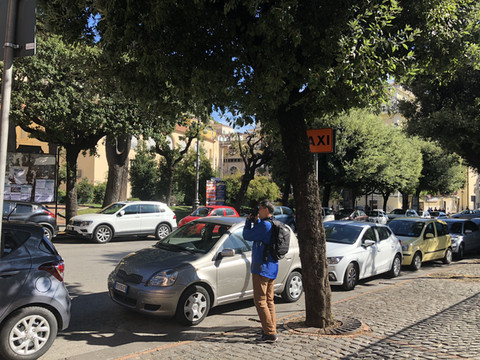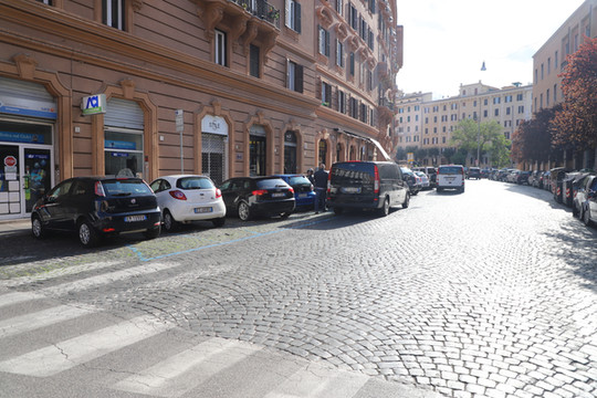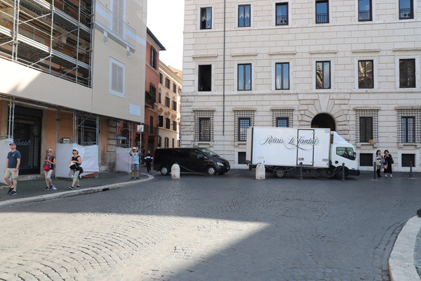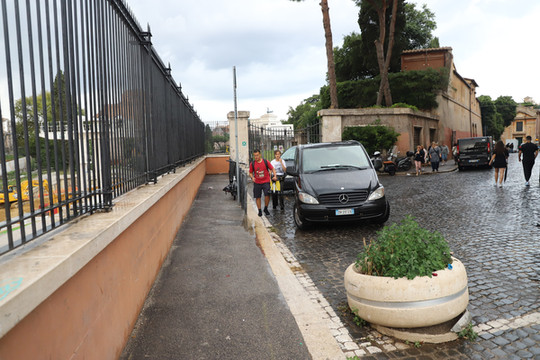 我们的车穿过罗马市几个小胡同,拐过几道弯停在纳沃纳广场边上,就是小货车后面的那辆黑车。