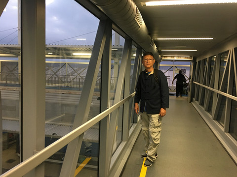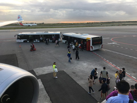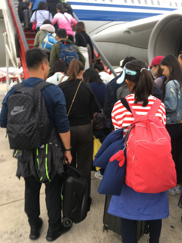 乘摆渡车抵达停机坪开始登机,乘坐10月6日11:25CA846航班,经历10个半小时的飞行,于7日凌晨4:15返回北京。