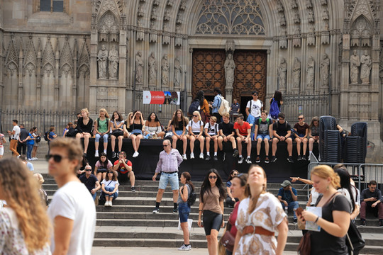 巴塞罗那大教堂(Barcelona Cathedral),距酒店直线距离1.43公里,一些年轻人坐在老城区大教堂前休息。