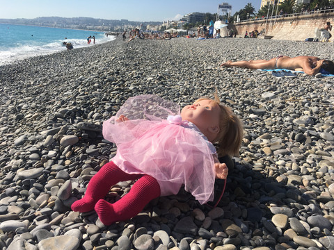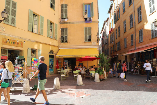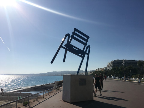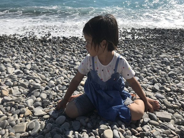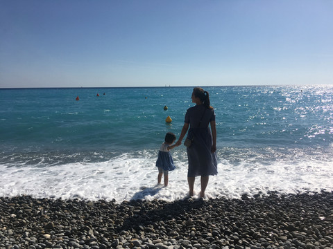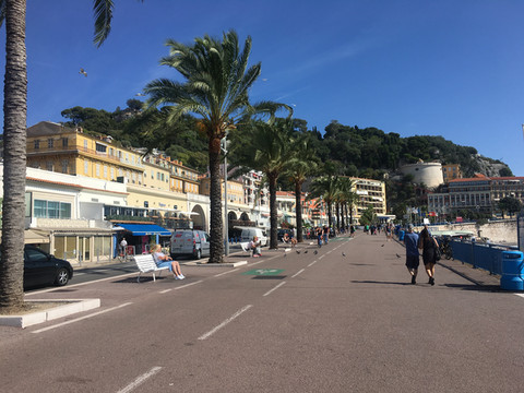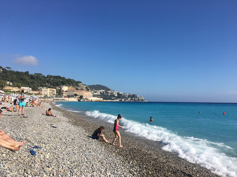 尼斯位于地中海北岸,终年风大浪大,所处环境让这里的海滩更显硬朗。光脚踏在那些大大小小的、圆溜溜的鹅卵石上,还是有些痛,穿上鞋踩上去却很舒服。