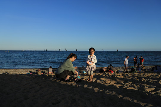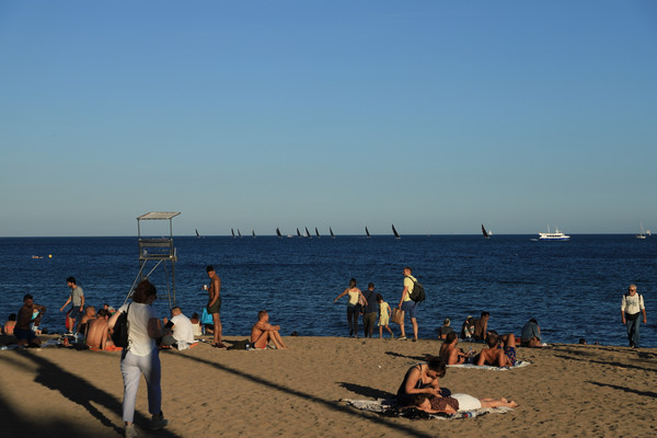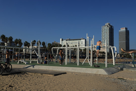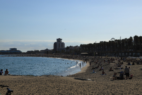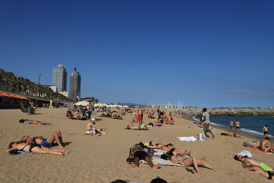 巴塞罗那塔海滩游玩项目繁多,沙滩背倚巴塞罗那市中心,海鲜餐厅、酒吧、凉亭比比皆是。