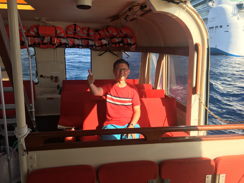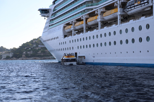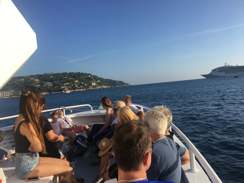 坐小艇离开尼斯小镇,回到我们的邮轮,我们的邮轮就在前方。