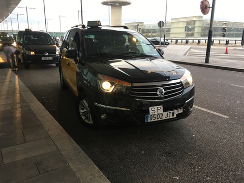 我们在邮轮码头门口叫了辆出租车(七人座),来到巴塞罗那国际机场。码头上出租车很多,也很方便,码头到机场共39欧元。
