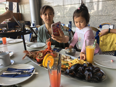 邻桌是从美国过来的游客,非常的健谈,主动与我们聊了起来,问长问短。