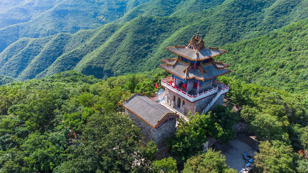 一层为道士居所,二层为星斗殿和无梁殿,三层为玉皇阁,四周有汉白玉围栏,阁内供奉的是玉皇大帝,日月神。