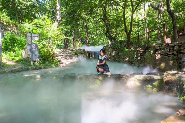 在神仙峪中溪流潺潺、和风习习、树木葱茏、鸟语花香。